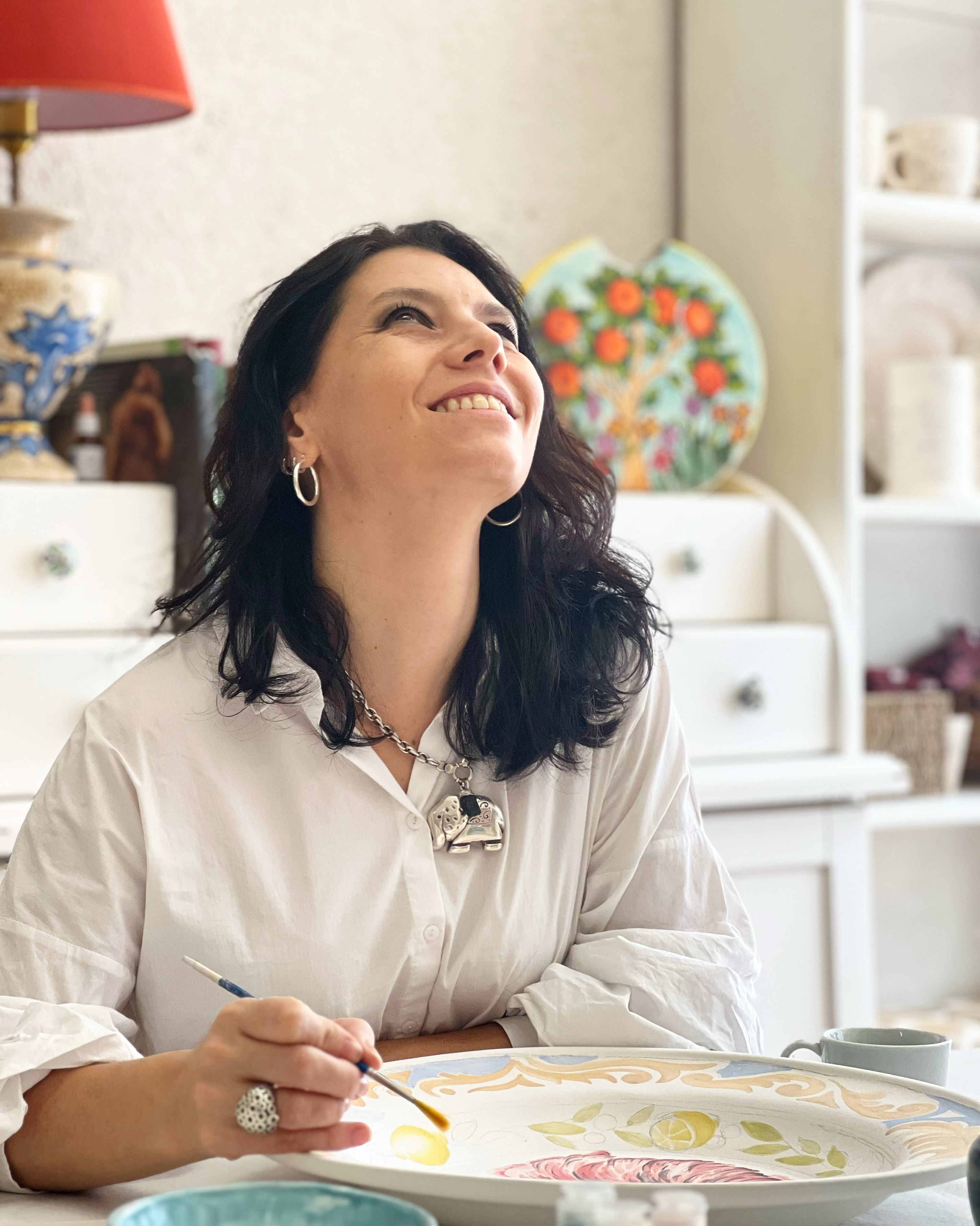 Su historia artística comenzó inspirada por la magia del Mediterráneo: su luz, sus azules infinitos, la calidez de sus texturas y la tradición de lo hecho a mano. Con el paso del tiempo, esta esencia se fusionó con otro amor profundo: el universo botánico, la presencia de lo verde y la energía vital de las plantas. Esa combinación dio origen a un lenguaje artístico único, donde lo mediterráneo y lo orgánico conviven en armonía.